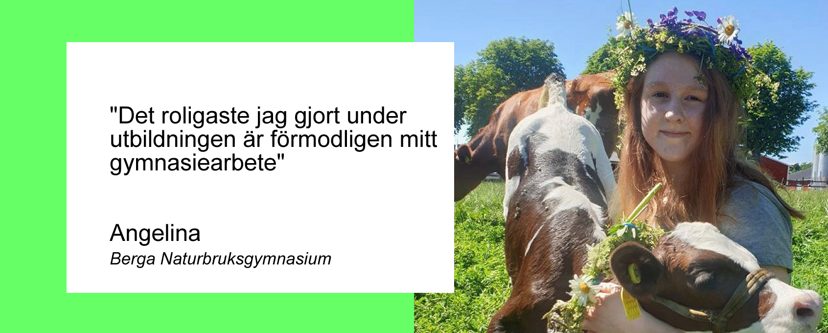 Angelina Ekeram går tredje året på profilen Lantbruk- Studieförberedande på Berga Naturbruksgymnasium.