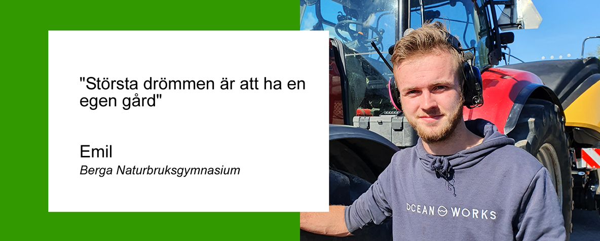 Emil Lindahl går tredje året på profilen Lantbruk på Berga Naturbruksgymnasium.